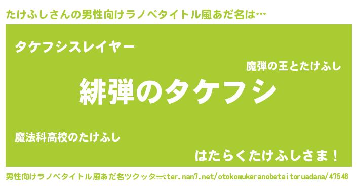 | ヒーロー風カッコイイあだ名 | 『仮面タケダー』『ウルトラ戦士タケフシ』 |
