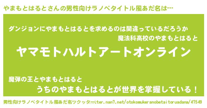 | 胡散臭い通販商品みたいなあだ名 | 『モテモテ間違いなし霊験あらたかなお札…その名も「やまもとはると」』 |