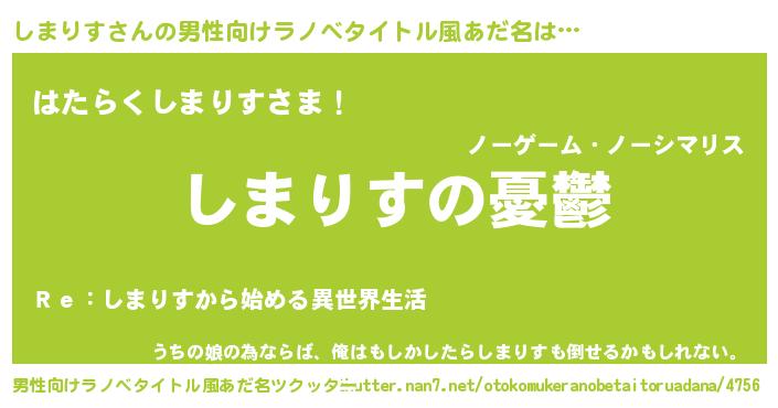 | ファンタジー風あだ名 | 『シマフェル』『エターナルシマリスー』 |