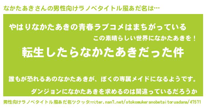 | 肩書あだ名 | 『なかたあき中尉』『なかたあき総理大臣』 |