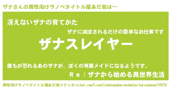| 意味不明あだ名 | 『めかぶ科ザナ属』『自称ザナ』 |