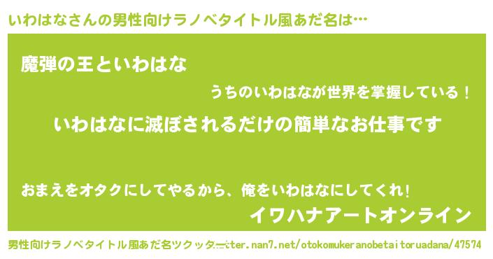 | 意味不明あだ名 | 『住所不定無職いわはな(65歳)』 |