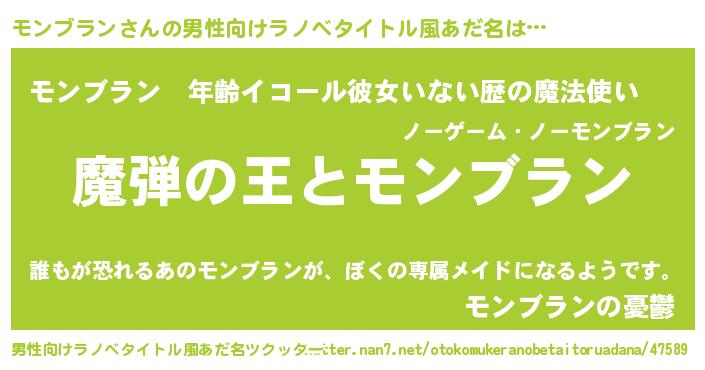 | 意味不明あだ名 | 『住所不定無職モンブラン(14歳)』 |