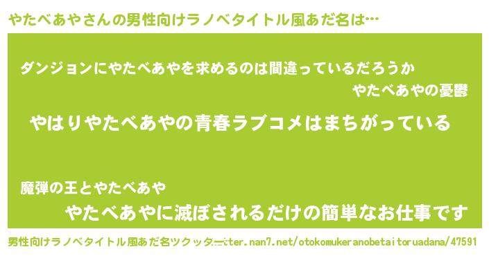 | ファンタジー風あだ名 | 『エターナルヤタベアヤー』『ヤタフェル』 |