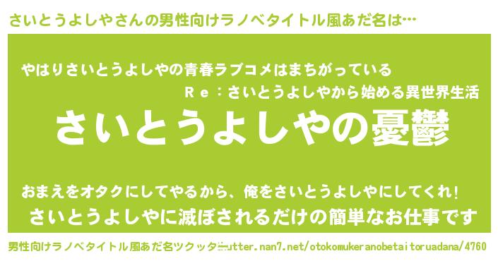 | 女子向けラノベタイトル風あだ名 | 『さいとうよしや姫と円卓の騎士』 |