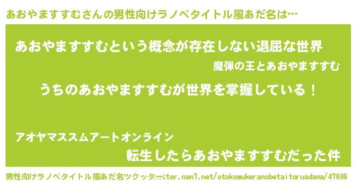 | ヒーロー風カッコイイあだ名 | 『ネオアオヤマススム』『仮面アオダー』 |