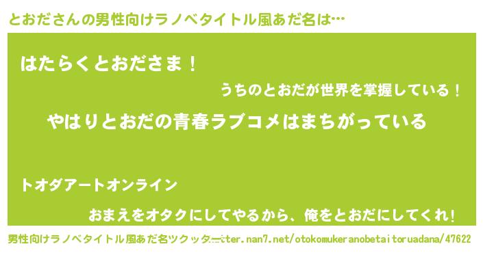 | 女子向けラノベタイトル風あだ名 | 『とおだの雑貨屋さん』 |