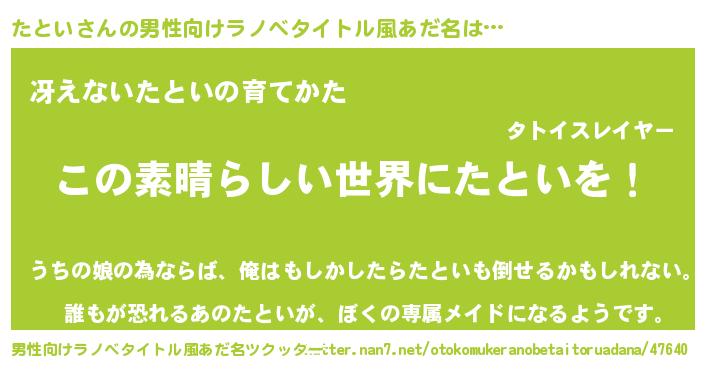 | 胡散臭い通販商品みたいなあだ名 | 『あなたにだけ特別に提供する世界で10本だけ現存している希少なブランデー…その名も「たとい」』 |