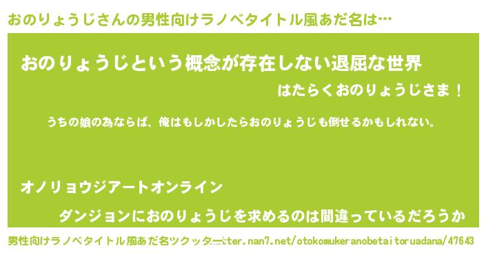 | 女子向けラノベタイトル風あだ名 | 『おのりょうじの婚約者』 |