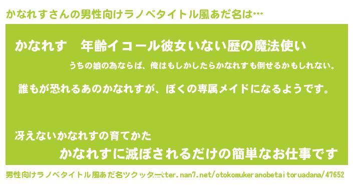 | ヒーロー風カッコイイあだ名 | 『ネオカナレス』『ウルトラかなれすマン』 |