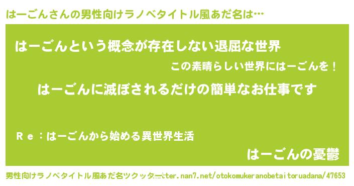 | ヘコむあだ名 | 『はーごん(震え声)』『はーもー』 |