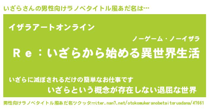 | ヘコむあだ名 | 『いざにゅー』『いざら(笑)』 |