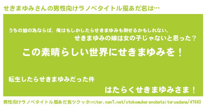せきまゆみさんの男性向けラノベタイトル風あだ名をツクッター!