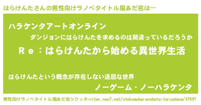 | 意味不明あだ名 | 『自称はらけんた』『ペロリンはらけんた』 |