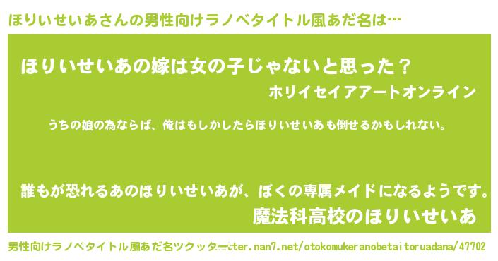 | 意味不明あだ名 | 『ほりいせいあフォーエバー』 |