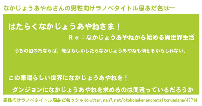 | ファンタジー風あだ名 | 『エターナルナカジョウアヤネー』 |