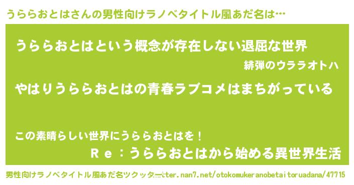 | ファンタジー風あだ名 | 『エターナルウララオトハー』 |