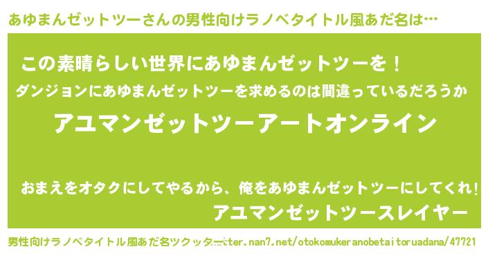 | 肩書あだ名 | 『あゆまんゼットツーCEO』 |