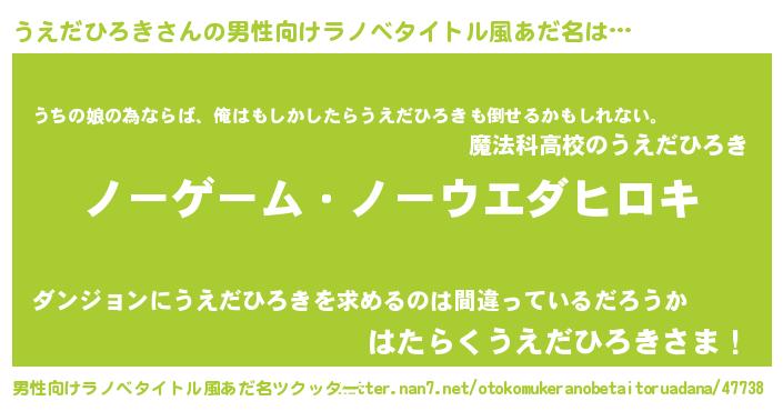 | 女子向けラノベタイトル風あだ名 | 『死神うえだひろきの再婚』 |