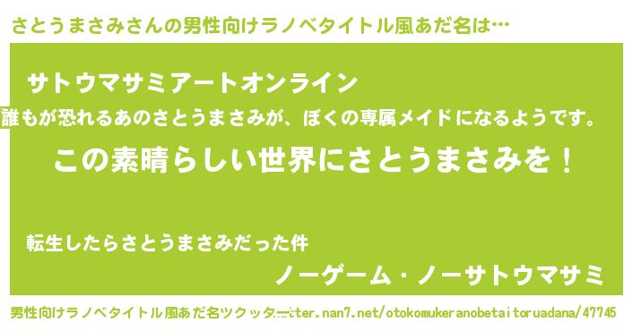 | 女子向けラノベタイトル風あだ名 | 『悪役さとうまさみに転生したようですが、知った事ではありません』 |