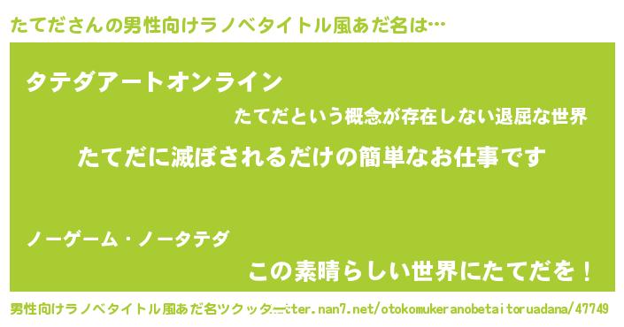 | 胡散臭い通販商品みたいなあだ名 | 『億万長者になれる霊験あらたかなお札…その名も「たてだ」』 |