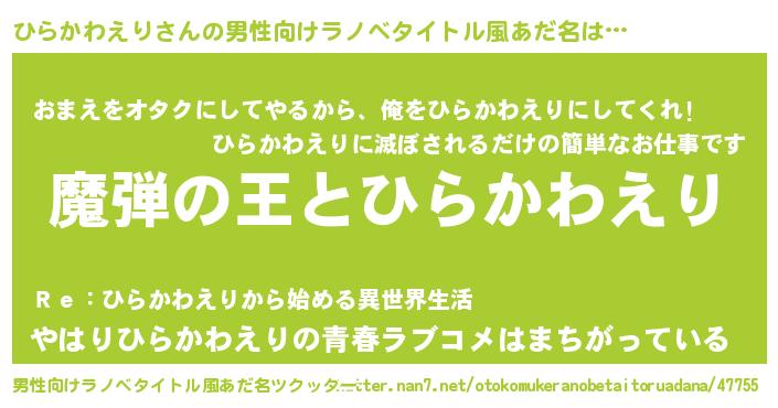 | ヒーロー風カッコイイあだ名 | 『仮面ヒラダー』『愛の使者ひらかわえり』 |