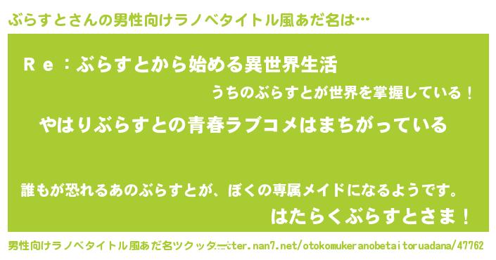| 意味不明あだ名 | 『ぶらすとフォーエバー』『自称ぶらすと』 |