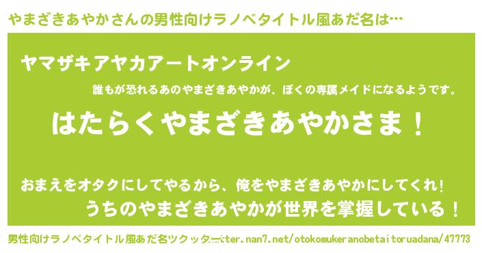 | 胡散臭い通販商品みたいなあだ名 | 『モテモテ間違いなし霊験あらたかなお札…その名も「やまざきあやか」』 |