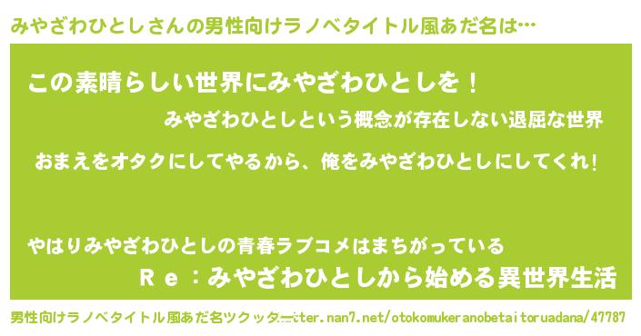 | 女子向けラノベタイトル風あだ名 | 『みやざわひとし恋絵巻』 |
