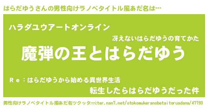 | ヒーロー風カッコイイあだ名 | 『仮面ハラダー』『スーパーハラダユウ』 |