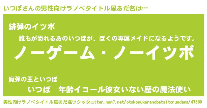 | 女子向けラノベタイトル風あだ名 | 『いつぼ恋絵巻』『いつぼの玉の輿計画!』 |