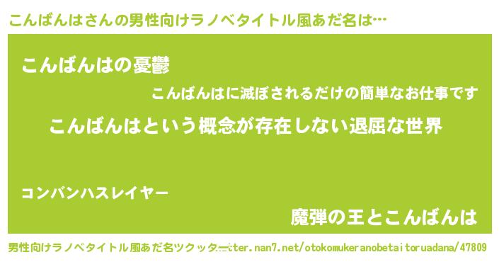 | 胡散臭い通販商品みたいなあだ名 | 『絶対に幸福をもたらす水素水…その名も「こんばんは」』 |