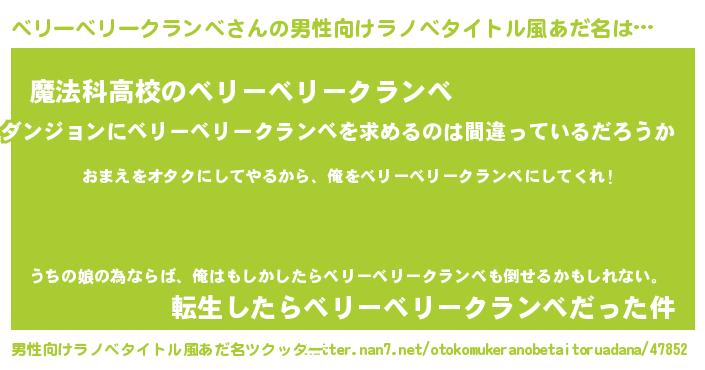 | 胡散臭い通販商品みたいなあだ名 | 『100人中100人が認めたイリジウム磁石…その名も「ベリーベリークランベ」』 |