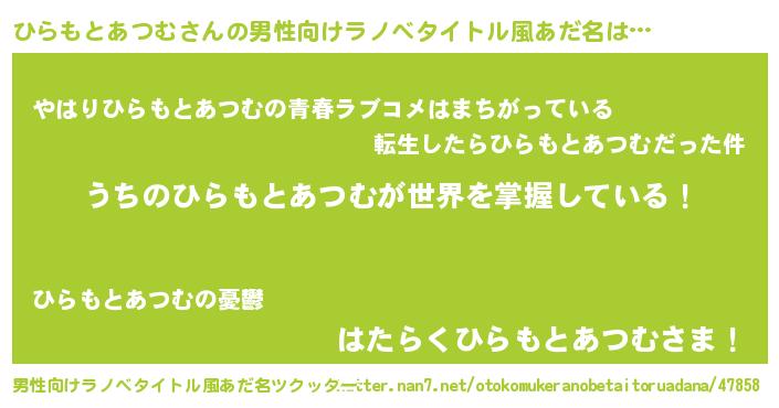 | 意味不明あだ名 | 『ひらもとあつむフォーエバー』 |