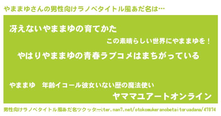 | 女子向けラノベタイトル風あだ名 | 『やままゆの雑貨屋さん』 |