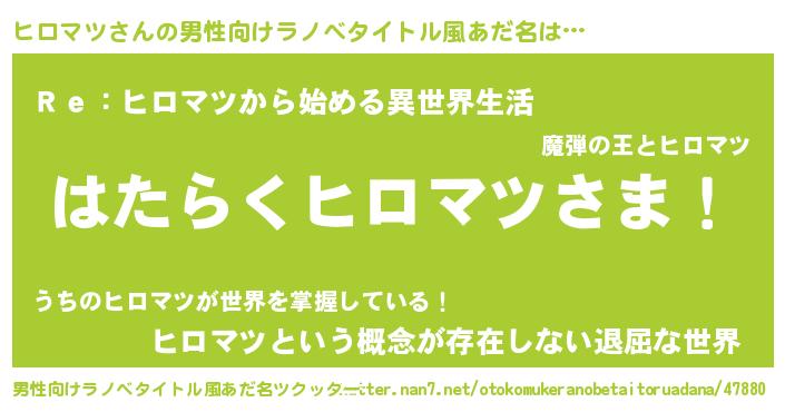 | 意味不明あだ名 | 『自称ヒロマツ』『永久保存ヒロマツ』 |