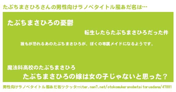 | 意味不明あだ名 | 『永久保存たぶちまさひろ』 |