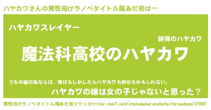 | ヒーロー風カッコイイあだ名 | 『ウルトラ戦士ハヤカワ』『黄金騎士ハヤ』 |