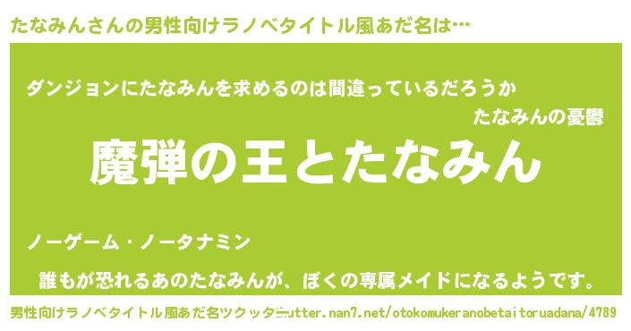 | 意味不明あだ名 | 『住所不定無職たなみん(8歳)』 |