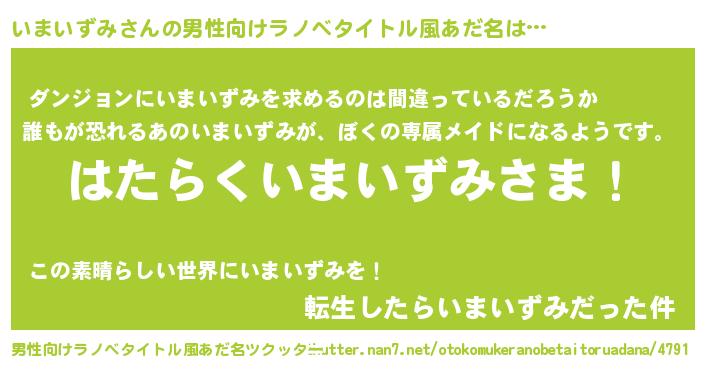| 胡散臭い通販商品みたいなあだ名 | 『伝統あるサプリメント…その名も「いまいずみ」』 |