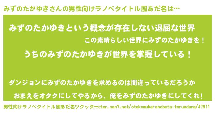 | ヘコむあだ名 | 『みずのたかゆき(震え声)』『みずっちょ』 |