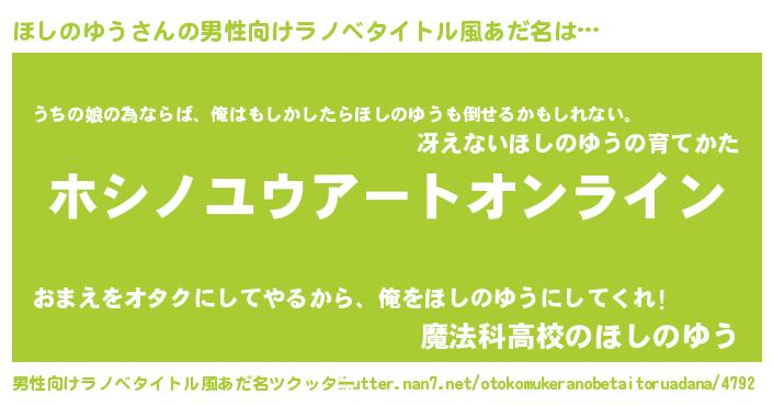 | ファンタジー風あだ名 | 『ホシフェル』『エターナルホシノユウー』 |