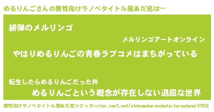 | 女子向けラノベタイトル風あだ名 | 『めるりんごの雑貨屋さん』 |