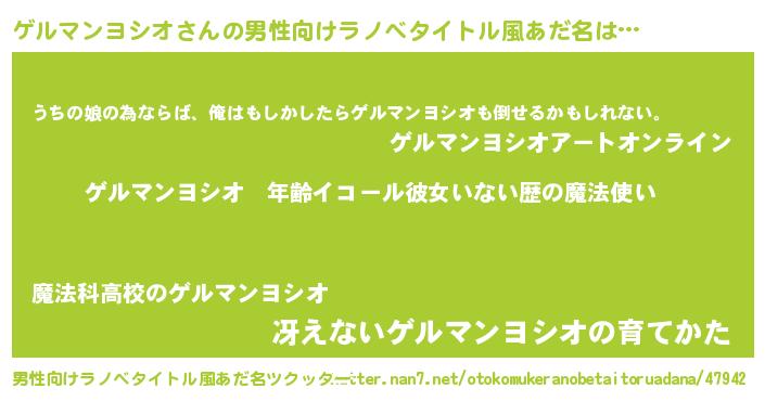 | 欧米人風あだ名 | 『トリンドルゲルマンヨシオ』 |