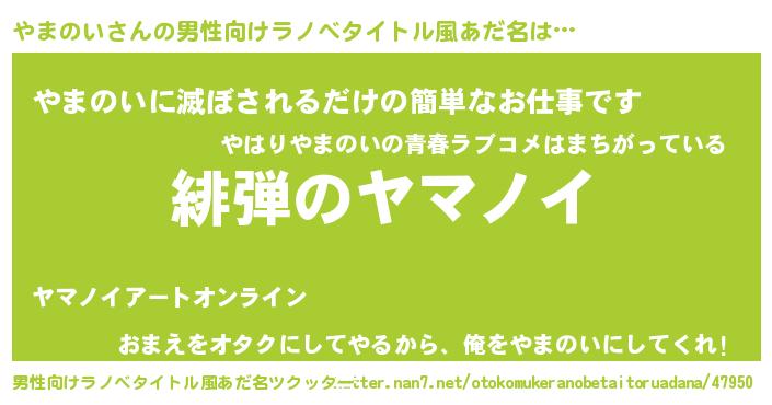 | 欧米人風あだ名 | 『やまのい・ステッグマイヤー』 |