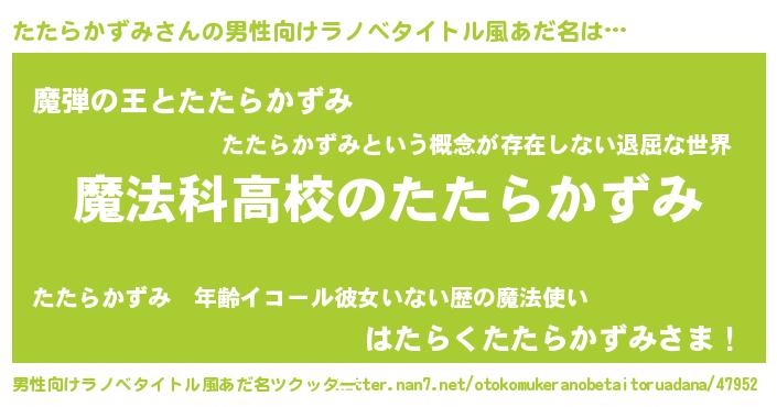 | 女子向けラノベタイトル風あだ名 | 『たたらかずみなんてお断りですっ。』 |