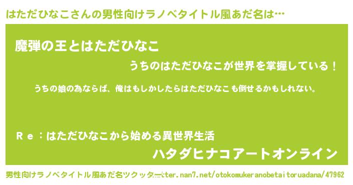 | ヒーロー風カッコイイあだ名 | 『ウルトラはただひなこマン』 |