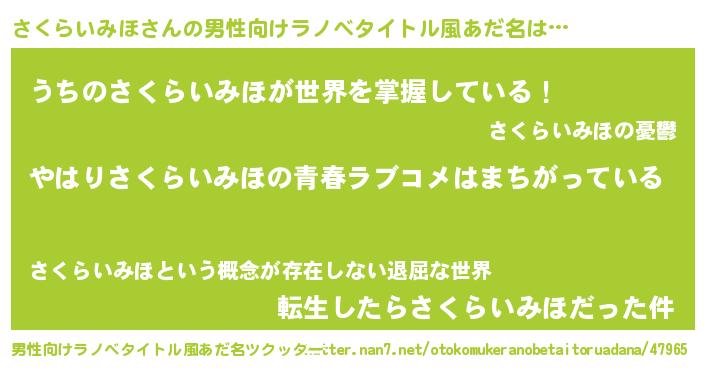 | 女子向けラノベタイトル風あだ名 | 『さくらいみほの雑貨屋さん』 |