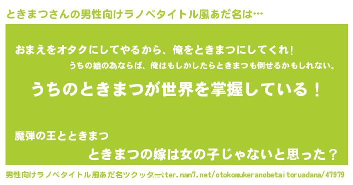 | ヒーロー風カッコイイあだ名 | 『慈愛の使者ときまつ』『黄金騎士トキ』 |