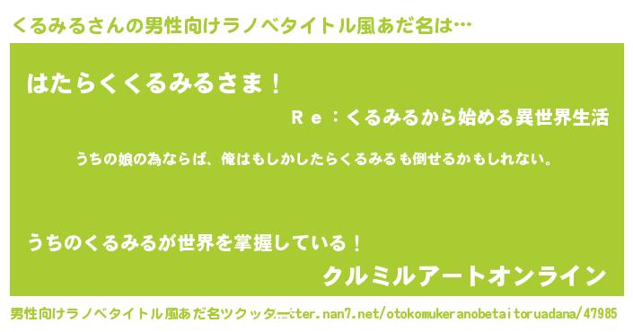 | 意味不明あだ名 | 『くるみるフォーエバー』『自称くるみる』 |